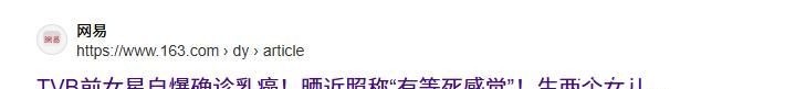 2.网易网:TVB前女星自爆确诊乳癌!晒近照称“有等死感觉”!生两个女儿曾被指面相克夫!